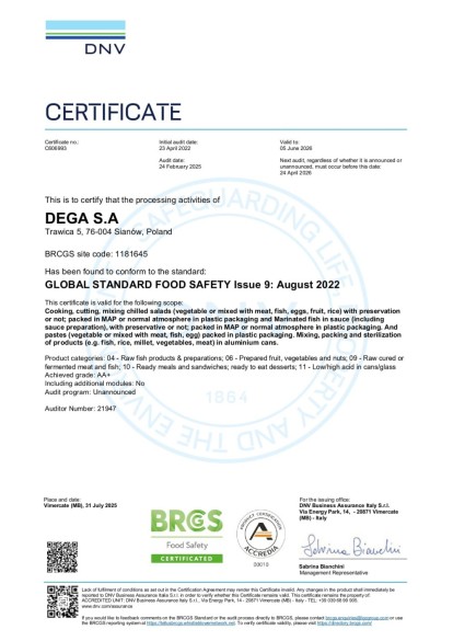 Firma DEGA to producent sałatek i przetworów rybnych od 1992 roku.